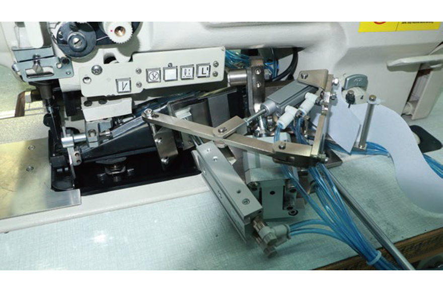 3、多功能送帶裝置含有自動穿帶、剪帶、收尾折邊等功能, 替代人工操作,減少了繁瑣的操作流程。