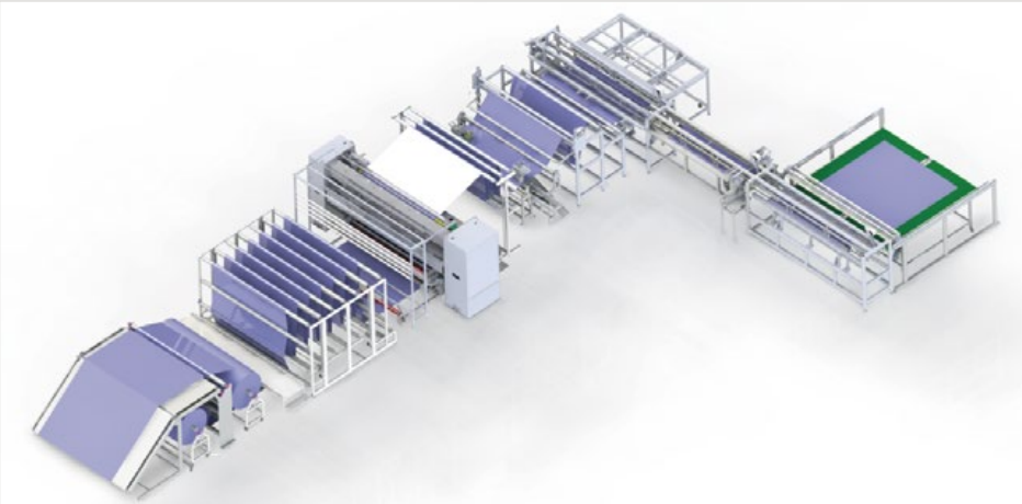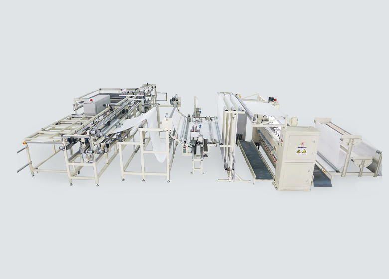 1、由來料儲(chǔ)料調(diào)節(jié)控制機(jī)構(gòu),可調(diào)寬度的側(cè)邊縫制機(jī)構(gòu),長度可控的橫裁機(jī)構(gòu),同步控制的橫向輸送機(jī)構(gòu),自動(dòng)剪線的橫縫機(jī)構(gòu)和