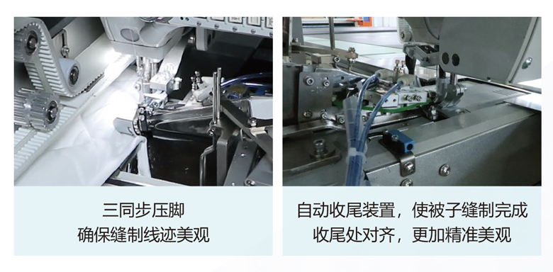 5、自動收尾裝置,使被子縫制完成收尾處對齊,更加精準美觀。