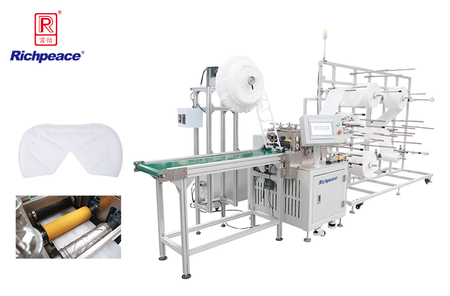 1.自動化生產N95、KN95等醫用防護類口罩片,從面料輸入到展開式折疊口罩切片,自動完成鼻梁條置入、花輥焊接、標識噴印(選配),自動完成口罩切片、廢料分離等,成品外形尺寸標準、合格率高。